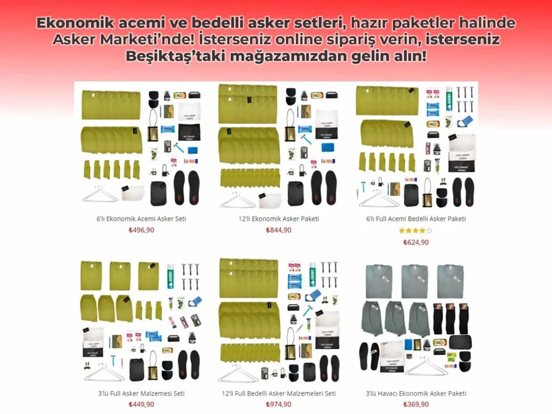 Asker Setleri ve Beşiktaş Asker Malzemeleri Satan Yer: Asker Marketi